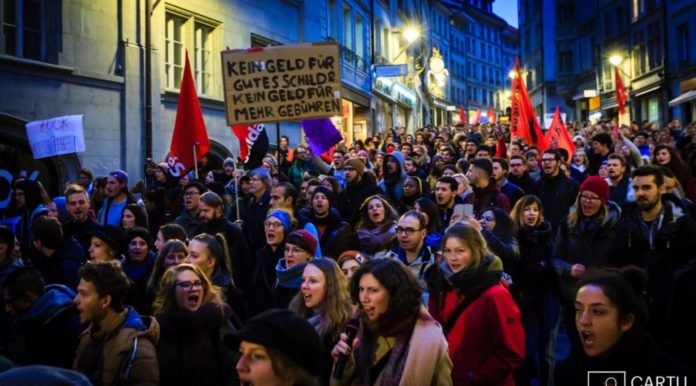 Manifestazione studentesca nazionale a Berna per dire No ai tagli alla scuola, No ad un’istruzione mercificata a vantaggio di pochi, Sì ad una scuola pubblica forte e Sì ad un’educazione emancipatrice e accessibile a tutti!