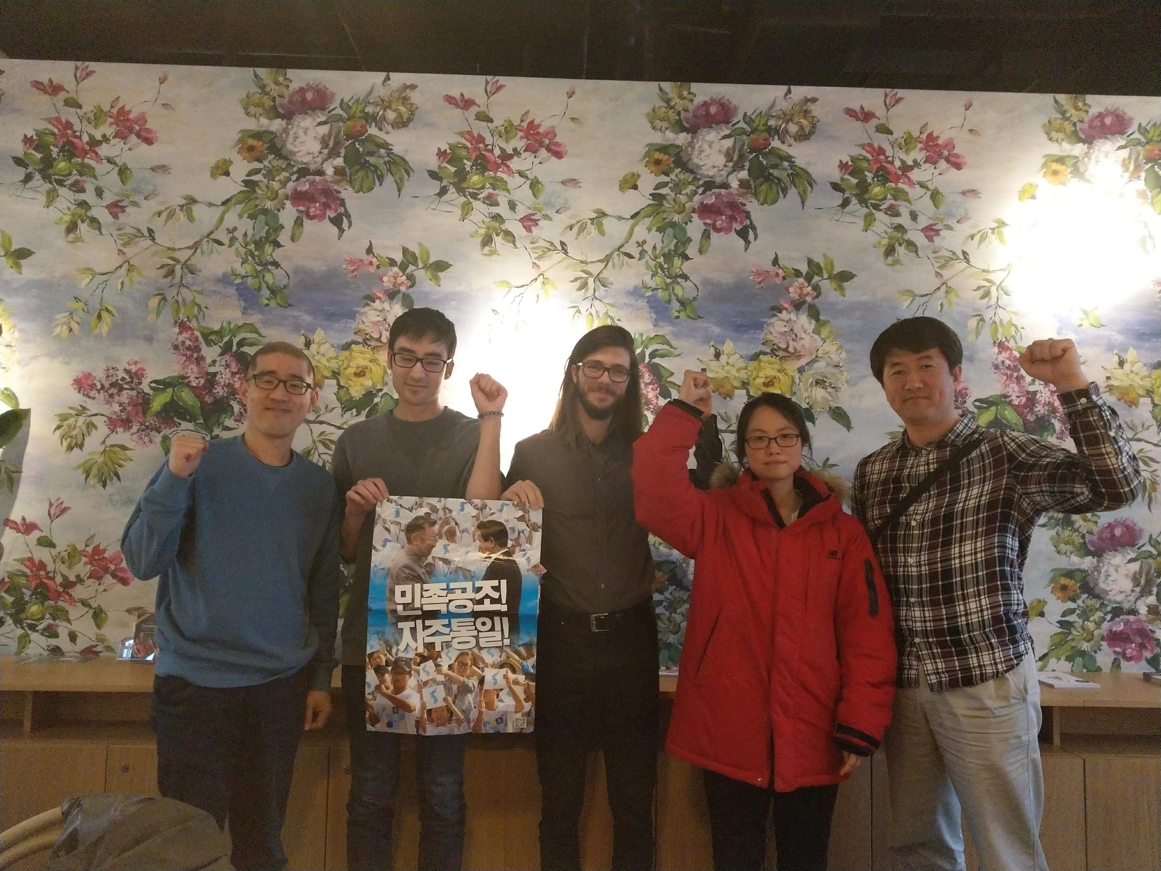 Nei giorni scorsi i compagni Alberto Togni e Francesco Vitali, membri del nostro Comitato Centrale, hanno incontrato a Lucerna una delegazione del “People’s Democracy Party” sudcoreano (link) che è arrivata a farci visita e con cui abbiamo trovato vari punti di convergenza: la loro attività politica è particolarmente concentrata sul tema della riunificazione della patria, la fine della guerra e delle esercitazioni militari congiunte fra Seoul e Washington nonché l’espulsione della presenza statunitense dal proprio territorio.