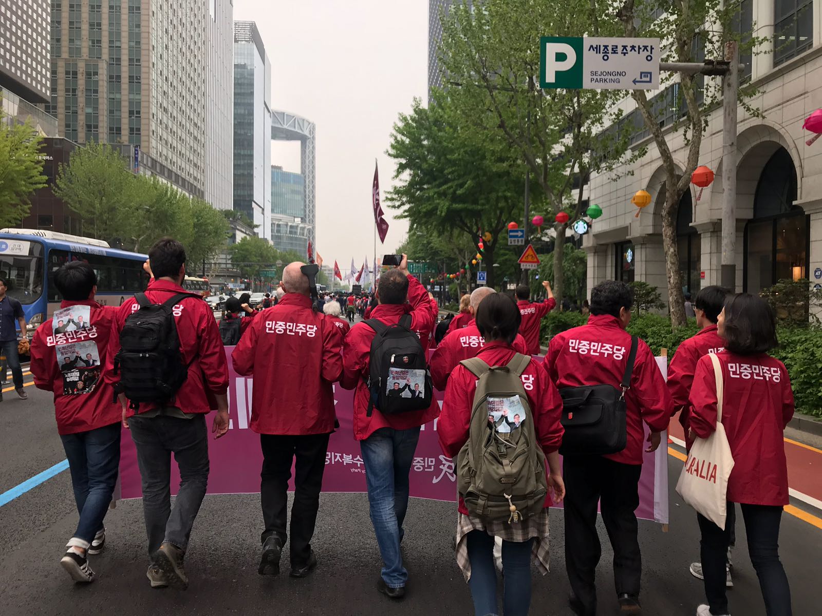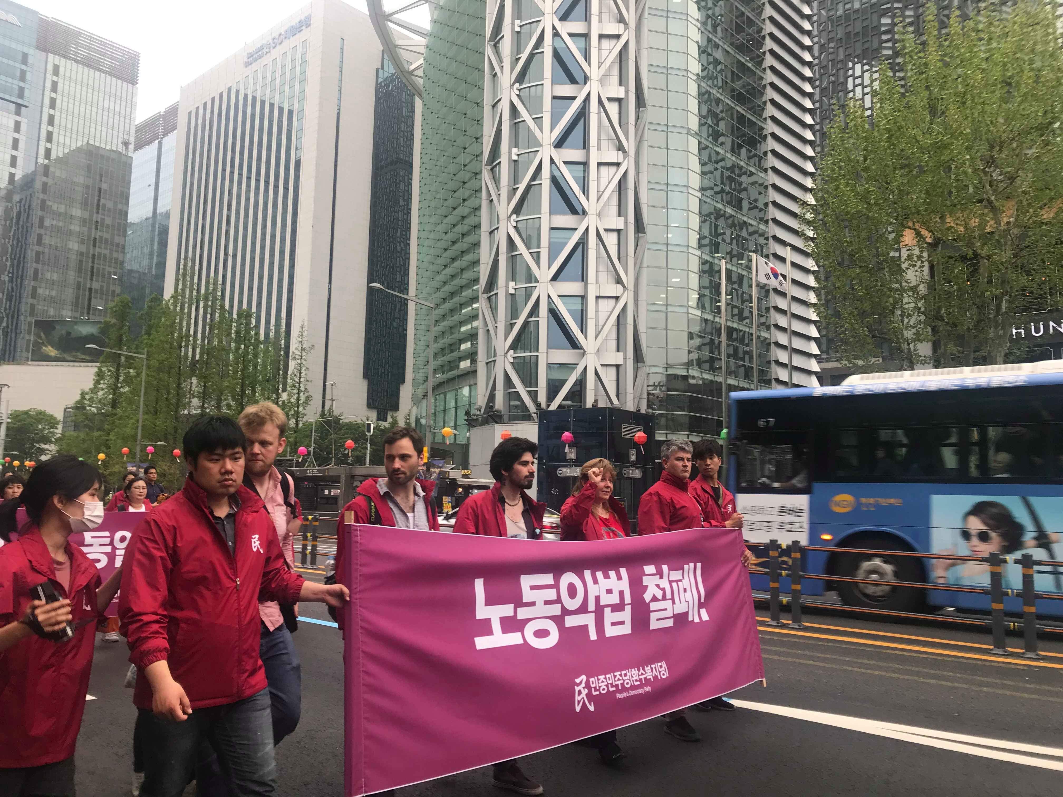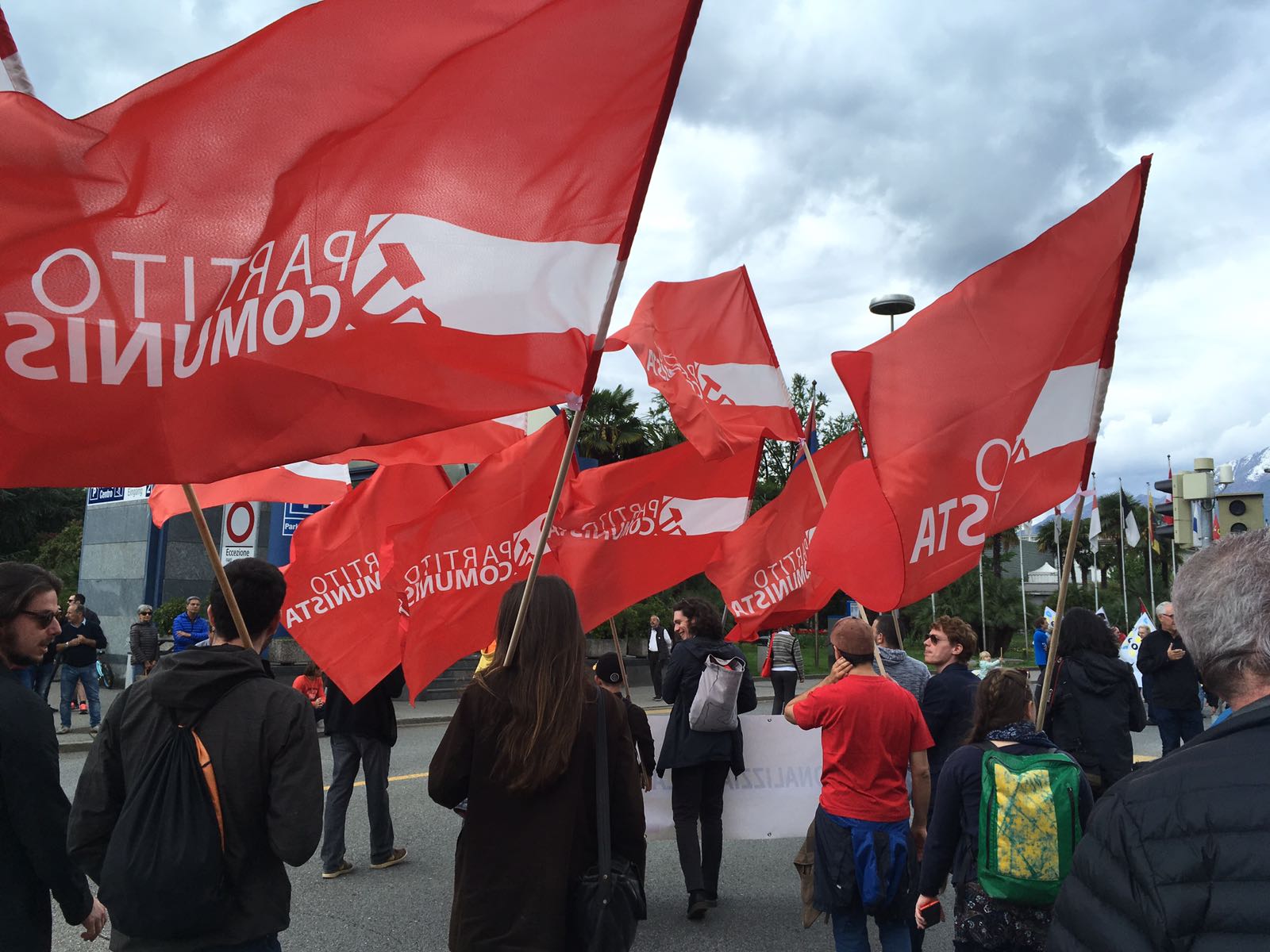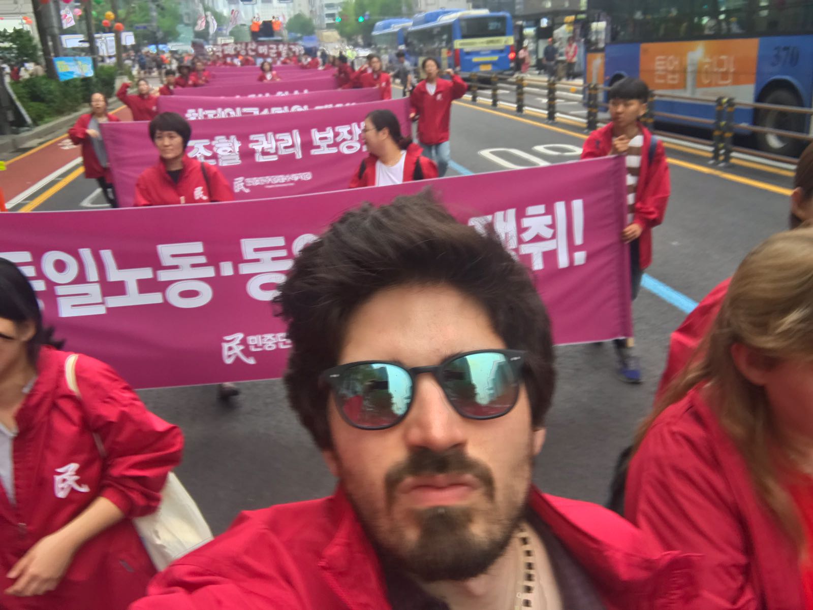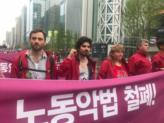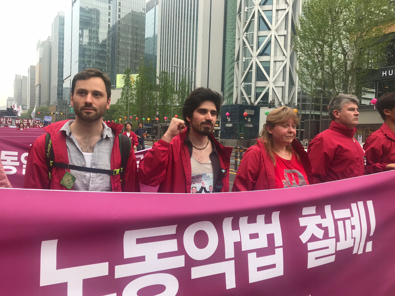 Ma quest’anno il nostro Partito era presente anche in altri Paesi: oltre a Locarno, infatti, avevamo delegati a Pechino, Seoul e Lisbona. In particolare il nostro rappresentante Samuel Iembo ha preso parte, in Corea del Sud, alla Giornata dei Lavoratori nello spezzone comunista del Partito della Democrazia Popolare (PDP) e ha fatto visita a un picchetto di operai in sciopero a Seoul, solidarizzando con i sindacati sudcoreani che festeggiavano anche la fase di disgelo fra le due Coree. Due altri nostri rappresentanti, Davide Rossi e Pierluigi Colombini, erano invece in Cina e hanno preso parte ai festeggiamenti previsti a Pechino. Nel corteo di Lisbona con il Partito Comunista Portoghese (PCP) e il sindacato CGTP-IN era presente invece il nostro esponente Stefano Araujo, che ha pure rilasciato una dichiarazione a una rete televisiva locale.