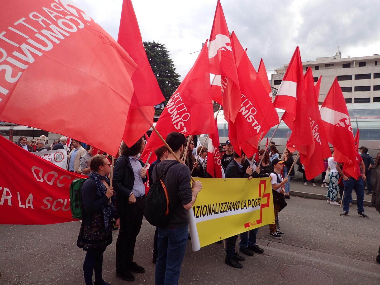 Benché ampiamente e vergognosamente censurato dai media, abbiamo manifestato dietro lo striscione “Nazionalizziamo la Posta” che è oggetto anche di una nostra iniziativa cantonale per ripristinare la regia federale e per smetterla con lo smantellamento del servizio pubblico e dei posti di lavoro. Era, questa, uno delle parole d’ordine più innovative del Primo Maggio 2018 ma solo una radio privata e nessun altro media ha ritenuto di doverlo approfondire.