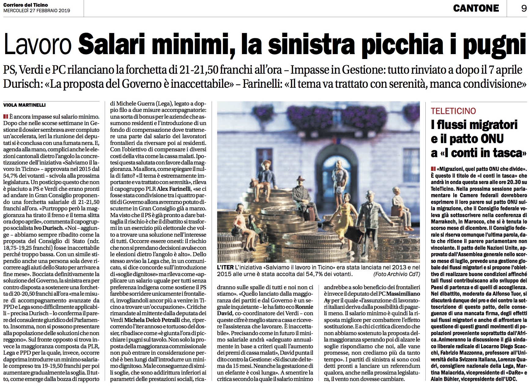 Dal canto suo Ivo Durisch ha ribadito che il salario minimo è uno strumento di lotta alla povertà fondamentale in un cantone che oggi si trova nettamente messo peggio rispetto alle altre regioni della Svizzera. Infatti il divario tra i salari ticinesi e quelli svizzeri è in costante aumento. Solo attraverso un salario sociale adeguato sarà possibile cercare di riportare la situazione del Ticino maggiormente vicino alla media nazionale e contrastare la pressione al ribasso degli ultimi anni.
