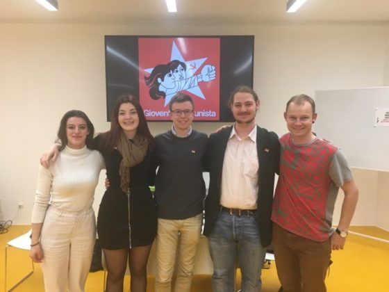 Infine l’assemblea ha eletto nel coordinamento della Gioventù Comunista pure Daniela Falconi (classe 1995), studentessa al Master in storia, e ha confermato al proprio posto Zeno Casella, Martino Marconi e Angelica Forni. La Gioventù Comunista augura un buon lavoro al neo-eletto coordinatore Luca Frei e al coordinamento intero e augura un buon proseguimento di militanza nel Partito Comunista all’ex-coordinatore Samuel Iembo.