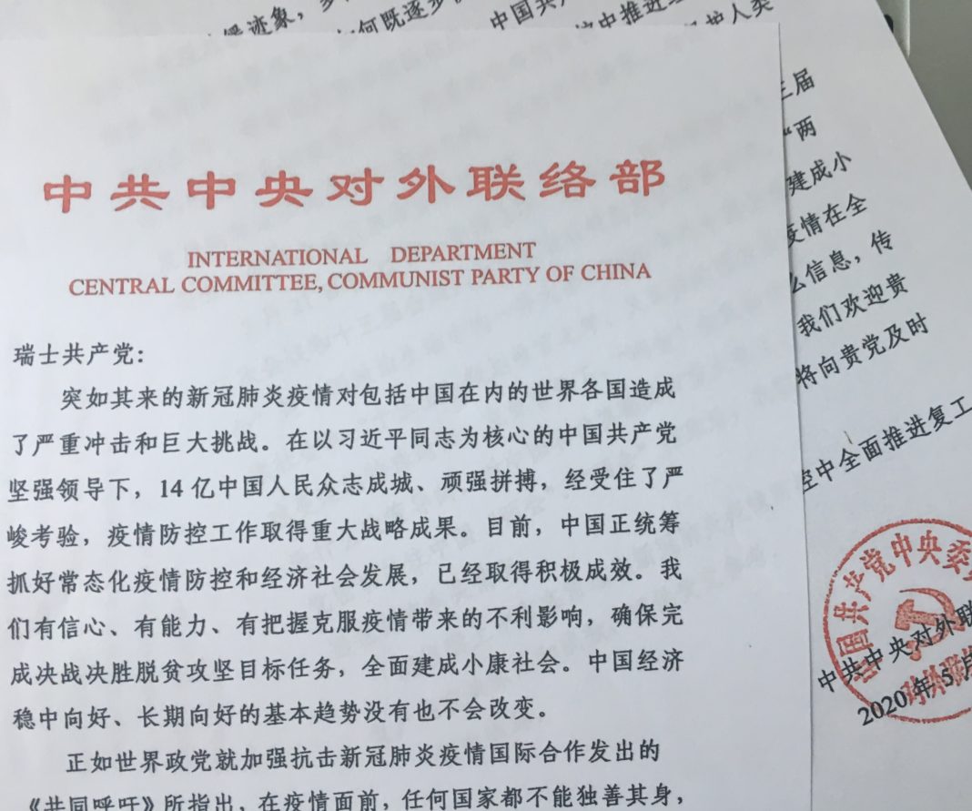 In una lettera giuntaci da Pechino lo scorso 19 maggio, i comunisti cinesi hanno espresso l’intenzione non solo di continuare a tenere aggiornato il nostro Partito, ma anche di rafforzare gli scambi con i comunisti svizzeri. In relazione alla lotta contro il COVID-19 il PCC stigmatizza l’atteggiamento egoistico di quei governi che in questi momenti difficili hanno tentato di compromettere il senso di solidarietà fra gli esseri umani, ostacolando la cooperazione fra le nazioni. Aggiungiamo noi: aizzando anche i peggiori sentimenti razzisti di sinofobia.