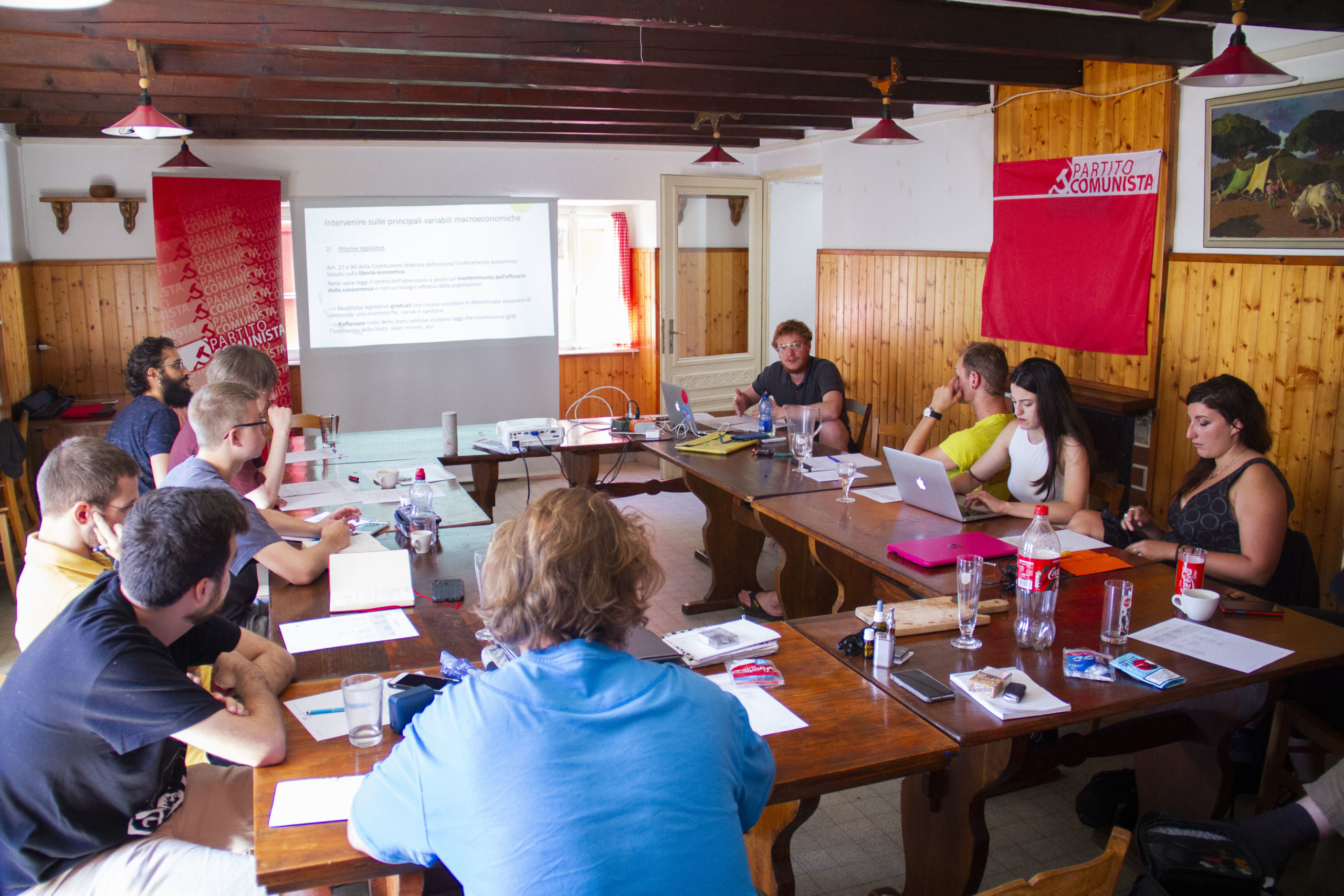 Si è svolto lo scorso finesettimana in Capriasca l’ormai tradizionale ritiro estivo del Comitato Centrale del Partito, che si è riunito in forma straordinaria e allargata al coordinamento della Gioventù Comunista, per il quale erano presenti i compagni Angelica Forni, Martino Marconi e Luca Frei. Invitata era anche la compagna Alessia Di Donato, in passato membro del Comitato Centrale del Partito dei Comunisti Italiani (PdCI). I partecipanti hanno assistito inizialmente a due corsi di aggiornamento politico: uno sulla risposta economica dopo la crisi sanitaria tenuto dal compagno Alessandro Lucchini, vicesegretario politico del Partito. E un altro su aspetti teorici utili nel lavoro istituzionale, tenuto dal compagno Edoardo Cappelletti, responsabile degli enti locali. Dopodiché si sono affrontate questioni più operative.