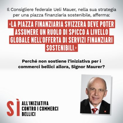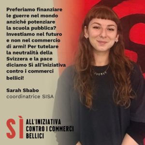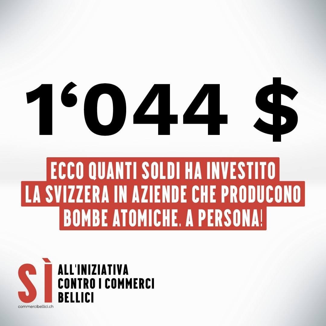 Nell’auspicio di una regolamentazione più stringente anche per le banche e le assicurazioni, per le quali l’iniziativa si presenta meno vincolante, riteniamo comunque importante che almeno alla BNS e alle casse pensioni sia imposto il divieto di finanziare il commercio bellico e di detenere titoli di società che generano oltre il 5% del proprio fatturato dalla produzione in ambito militare. Del resto, un tale provvedimento va inserito nella più ampia lotta contro la corsa al riarmo e a favore della pace, nell’ambito della quale la costruzione di un mondo multipolare dovrà assolvere un ruolo centrale. In questo senso, anche in nome della neutralità svizzera ribadiamo quindi la necessità d’allentare ogni forma di collaborazione militare con la NATO e l’UE, organismi le cui aspirazioni destabilizzatrici creano ormai il terreno fertile per la produzione e l’impiego di materiale bellico.