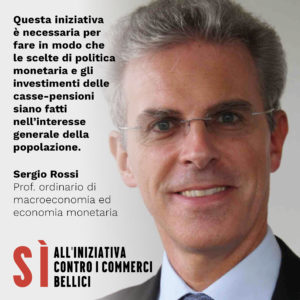 A fine 2017, soltanto la BNS gestiva un patrimonio di quasi 840 miliardi di franchi, mentre le 1700 casse pensioni un patrimonio di circa 820 miliardi di franchi. Una parte di queste ingenti somme sono destinate alla produzione di materiale bellico, foraggiando un commercio contrario agli interessi della maggioranza della popolazione, al principio della cooperazione pacifica tra le nazioni. Oltre a sottrarre importanti risorse da altri investimenti e a danneggiare l’ambiente, il finanziamento degli armamenti alimenta infatti i conflitti e le tensioni internazionali, che sono oltretutto sempre più alla base del problema dei flussi migratori. Risulta dunque intollerabile che la Svizzera, non volendo contribuire a limitare una pregiudizievole diffusione di armi e attrezzature militari, si trovi a vedere compromessa una politica di neutralità credibile e conseguente a causa di un gruppo di “pescecani”.