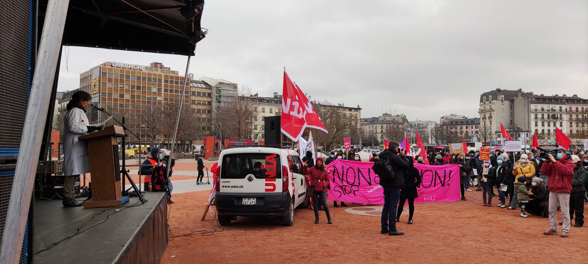 Nella giornata di oggi, 19 dicembre 2020, una delegazione del nostro Partito ha partecipato a una manifestazione svoltasi a Ginevra, nella piazza di Plainpalais. La manifestazione è stata convocata da un gran numero di organizzazioni: in particolare sindacati, ma anche partiti di sinistra, associazioni e collettivi; fra i principali organizzatori la CGAS (Comunità ginevrina d’azione sindacale), associazione mantello che raggruppa tutti i sindacati del Canton Ginevra.