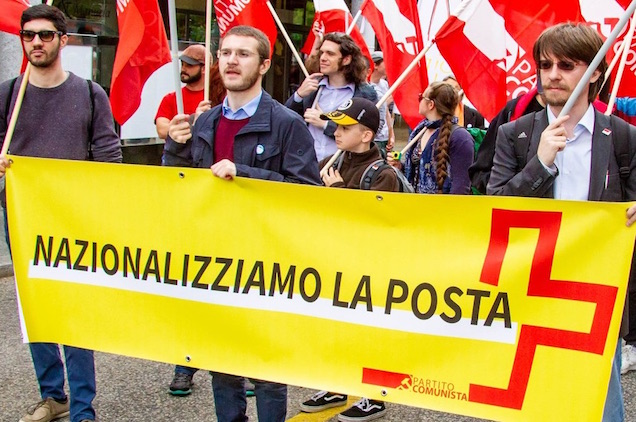Il Partito Comunista condanna la decisione del Consiglio federale di privatizzare PostFinance. Il nostro governo votato al neo-liberismo ha un piano: socializzare quei servizi pubblici che per loro stessa natura non portano profitti, mentre si privatizzano quei servizi pubblici redditizi, togliendo così soldi allo Stato di fatto drenandoli verso le multinazionali e i manager privati che li acquisiranno a scapito della collettività.