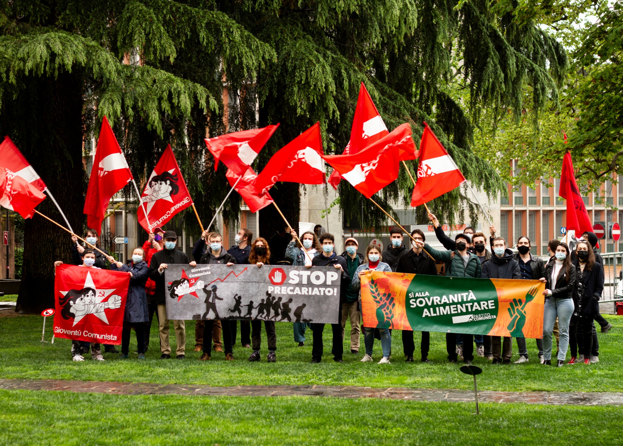 I comunisti, presenti con mascherine e disinfettanti, hanno allestito due bancarelle e hanno poi preso la parola dal palco davanti al Palazzo governativo con la granconsigliera Lea Ferrari, la quale ha tematizzato una questione originale e su cui voteremo il prossimo 13 giugno: il principio della “sovranità alimentare”, necessaria per riconoscere la giusta dignità alle lavoratrici e ai lavoratori della terra, per sostenere una produzione indigena variata e sostenibile a favore delle classi popolari e per incrementare il grado di autoapprovvigionamento del paese. Dopodiché è stata la volta di Luca Frei, coordinatore del nostro movimento giovanile, che ha insistito sui problemi crescenti inerenti il precariato giovanile e gli stage non pagati.