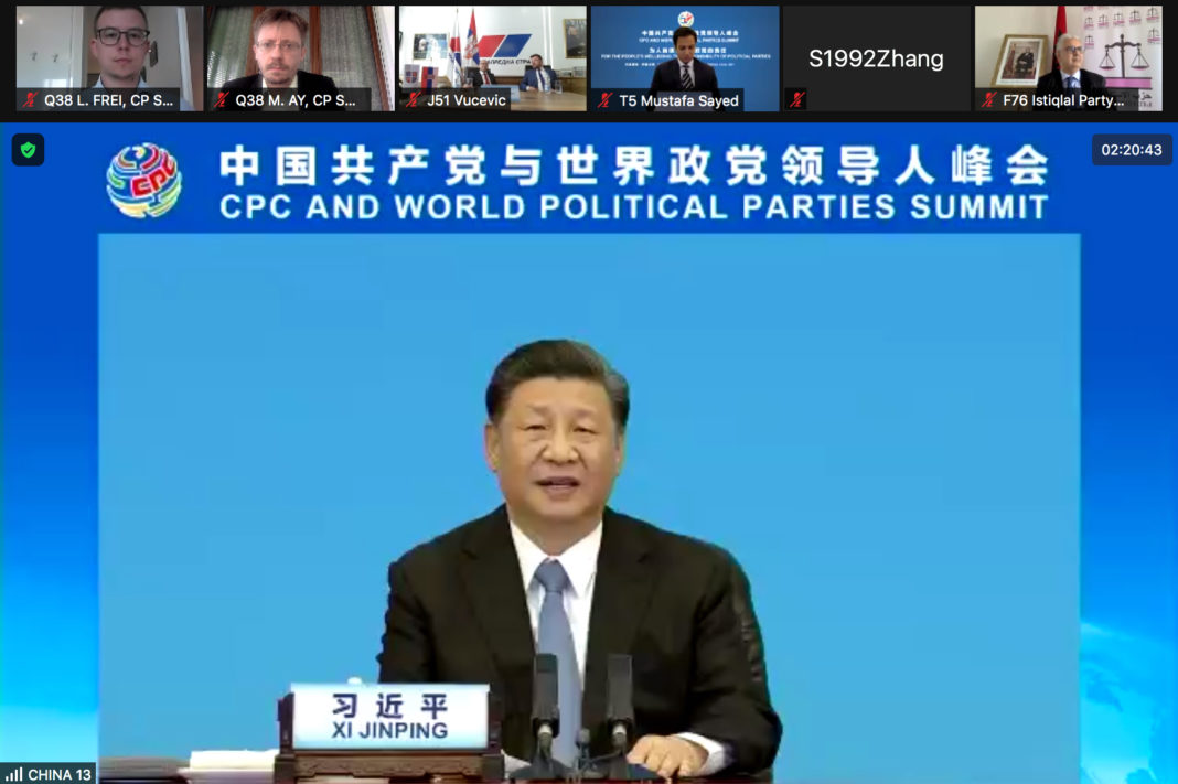 Connessi via Zoom – fra gli altri – c’erano anche il presidente cubano Miguel Mario Diaz-Canel, primo segretario del Partito Comunista di Cuba e gli ex-presidenti vietnamita Nguyễn Phú Trọng, segretario generale del Partito Comunista del Vietnam e boliviano Evo Morales, fondatore del Movimento al Socialismo. Hanno preso la parola anche in rappresentanza dei rispettivi partiti: il primo ministro russo Dimitri Medvedev (Partito Russia Unita); il presidente argentino Alberto Fernandez (Partito Giustizialista), l’ex-presidente kazako Nursultan Nazarbaev (Partito Nur Otan); il premier serbo Aleksandar Vucic (Partito Progressista), il presidente sudafricano Cyril Ramaphosa (African National Congress), il presidente del Congo Denis Sassou Nguesso (Partito Congolese del Lavoro), ecc.