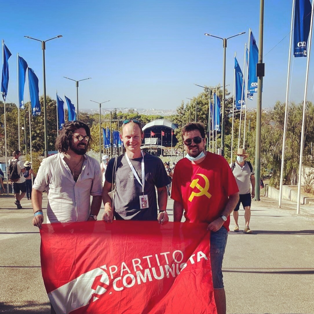 Tra il 3 e il 5 settembre si è svolta a Seixal, nei pressi di Lisbona, la Festa do Avante!, il settimanale edito dal Partito Comunista Portoghese (PCP). Il nostro Partito, che aveva già partecipato alla Festa con dei propri delegati nel 2018 e nel 2019, è stato invitato anche quest’anno dai compagni portoghesi: a rappresentarci come delegato è stato il compagno Zeno Casella, membro della Direzione del Partito, a cui si sono aggiunti i compagni Samuel Iembo (membro di Direzione) e Stefano Araujo (membro del Comitato Centrale).