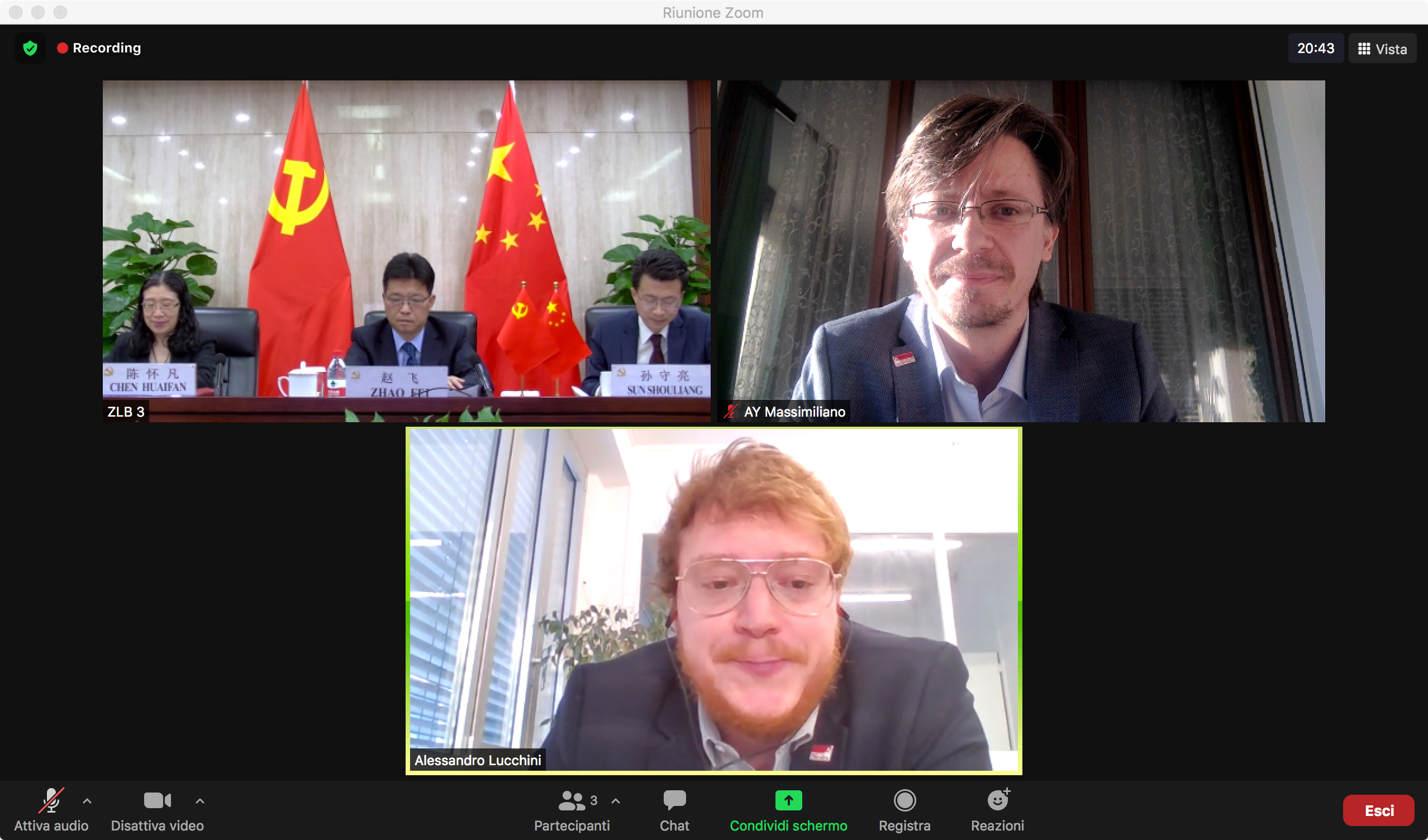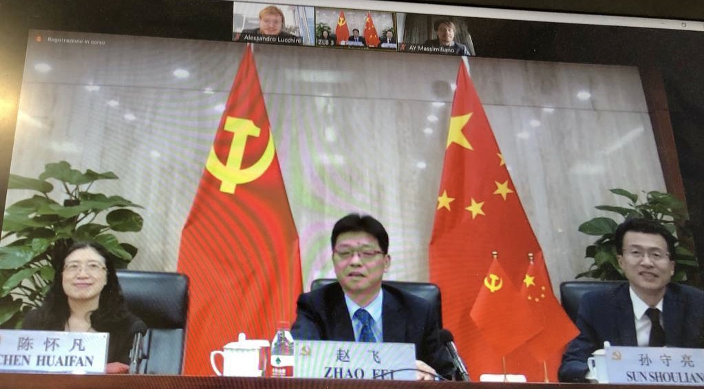 Si è svolta lo scorso giovedì mattina in videoconferenza un importante incontro bilaterale fra la Direzione del nostro Partito, rappresentata dal segretario politico Massimiliano Ay e dal vice-segretario politico Alessandro Lucchini con una delegazione del Comitato Centrale del Partito Comunista Cinese (PCC) rappresentata dal Dipartimento delle relazioni internazionali. A guidare la delegazione cinese vi era il direttore per le relazioni con l’Europa Occidentale, il compagno Zhao Fei. L’appuntamento aveva il duplice scopo per noi di illustrare ai compagni cinesi gli esiti del nostro 24° Congresso appena conclusosi e per loro di presentarci le decisioni dell’ultima sessione plenaria del Comitato Centrale del PCC.