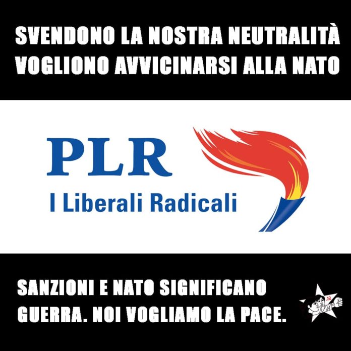 Le dichiarazioni del presidente del Partito Liberale Radicale Svizzero, che auspica un ulteriore avvicinamento della Svizzera alla NATO, sono – soprattutto in un momento come questo, con gli occhi del mondo puntati sulla nostra mancata neutralità nella guerra in corso in Ucraina – di una gravità inaudita e al limite dell’irresponsabile per la nostra stessa sicurezza nazionale. Il presidente del partito più influente del capitalismo svizzero ha appena lasciato intendere al mondo (cioè all’82% della popolazione che non abita in Occidente) che la Svizzera non deve più essere neutrale e deve anzi omologarsi alla NATO, un’alleanza militare offensiva, responsabile di guerre illegali dal punto di vista del diritto internazionale come quella del Kosovo (1999) o della Libia (2011) passando per troppi altri tragici scenari che, col pretesto delle presunte armi di distruzione di massa, hanno giustificato massacri di innocenti. La sicurezza della Svizzera dipende anche dal proprio status di paese neutrale, che il PLR sembra voler ora liquidare come richiesto dall’UE.