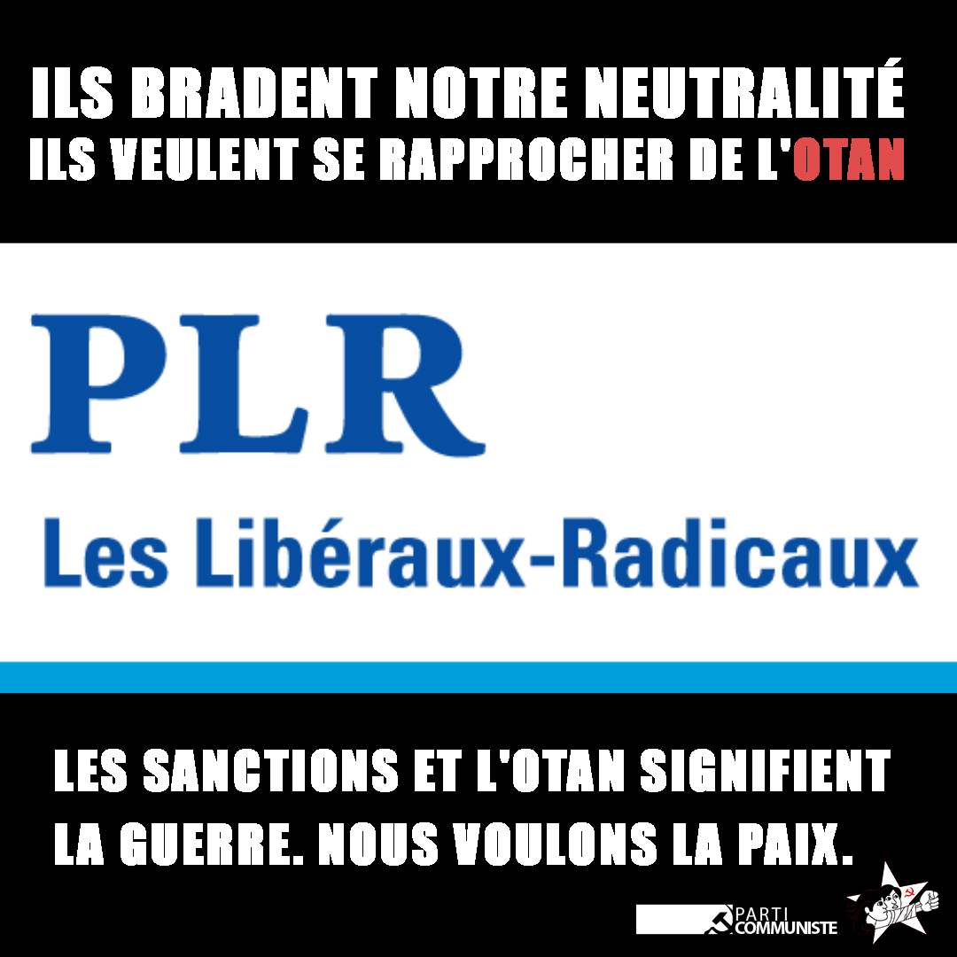 Les déclarations du président du Parti Libéral Radical Suisse, qui souhaite un ultérieur rapprochement de la Suisse à l’OTAN, sont – surtout en ce moment, alors que les yeux du monde entier sont pointés sur notre manque de neutralité dans la guerre en cours en Ukraine – d’une gravité sans précédent et à la limite de l’irresponsabilité pour notre propre sécurité nationale. Le président du parti le plus influent du capitalisme suisse vient de faire sous-entendre au monde entier (c’est-à-dire à 82% de la population qui ne vit pas en Occident) que la Suisse ne devrait plus être neutre et devrait plutôt s’intégrer dans l’OTAN, une alliance militaire offensive responsable de guerres illégales au regard du droit international, comme celle du Kosovo (1999) ou de la Libye (2011), ou d’autres scénarios tragiques qui, sous prétexte de prétendues armes de destruction massive, ont justifié des massacres d’innocents. La sécurité de la Suisse dépend également de son statut de pays neutre, que le PLR semble maintenant vouloir liquider comme l’exige l’UE.
