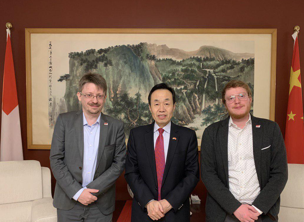 Alcune settimane fa, nella sua funzione di segretario politico del nostro Partito, il compagno Massimiliano Ay è stato invitato a Berna presso la residenza del compagno Wang Shihting, Ambasciatore della Repubblica Popolare Cinese in Svizzera, per una lunga cena di lavoro in cui sono state affrontate numerose questioni di attualità che hanno convinto il Partito Comunista (PC), una volta di più, dell’importanza che le relazioni fra i nostri due popoli si intensifichino.