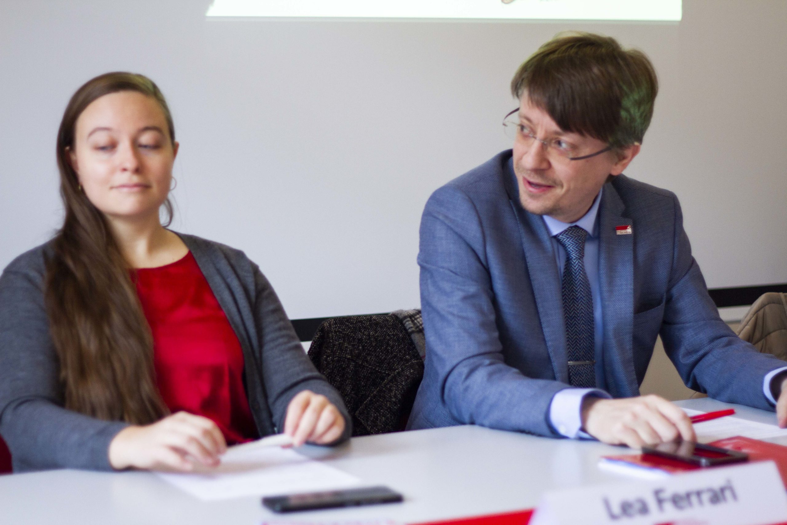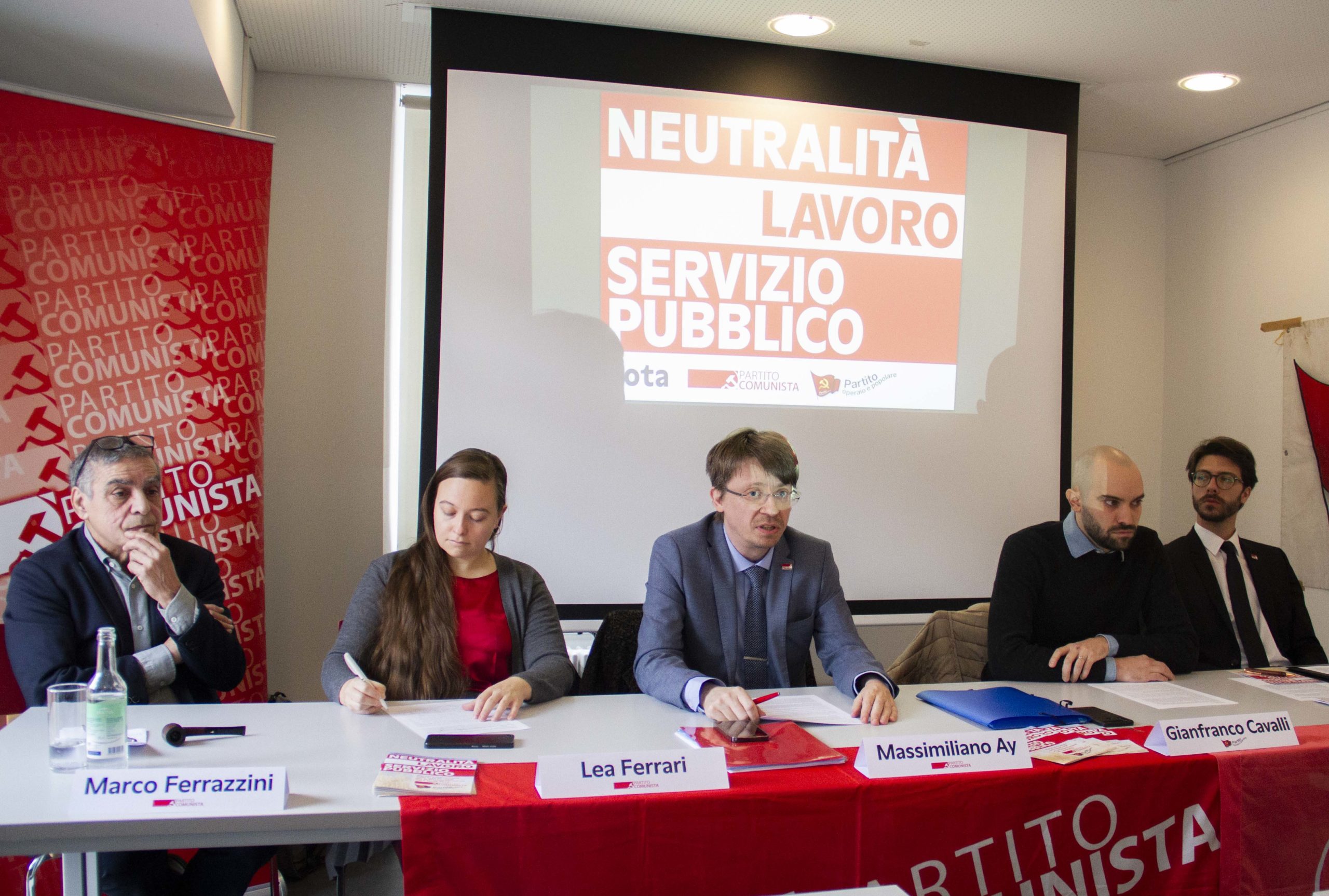 Massimiliano Ay ha spiegato lo spirito della coalizione, ovvero una politica coerente che si basa su tre priorità: neutralità, lavoro e servizio pubblico. In particolare ha specificato l’impostazione anti-europeista della lista PC-POP e l’importanza di difendere il servizio pubblico contro liberalizzazioni e privatizzazioni. Ay non ha mancato di rimarcare come i comunisti siano un voto utile in quanto attivi in maniera costante e non siano “meteore” che compaiono solo ogni 4 anni a ridosso delle elezioni.