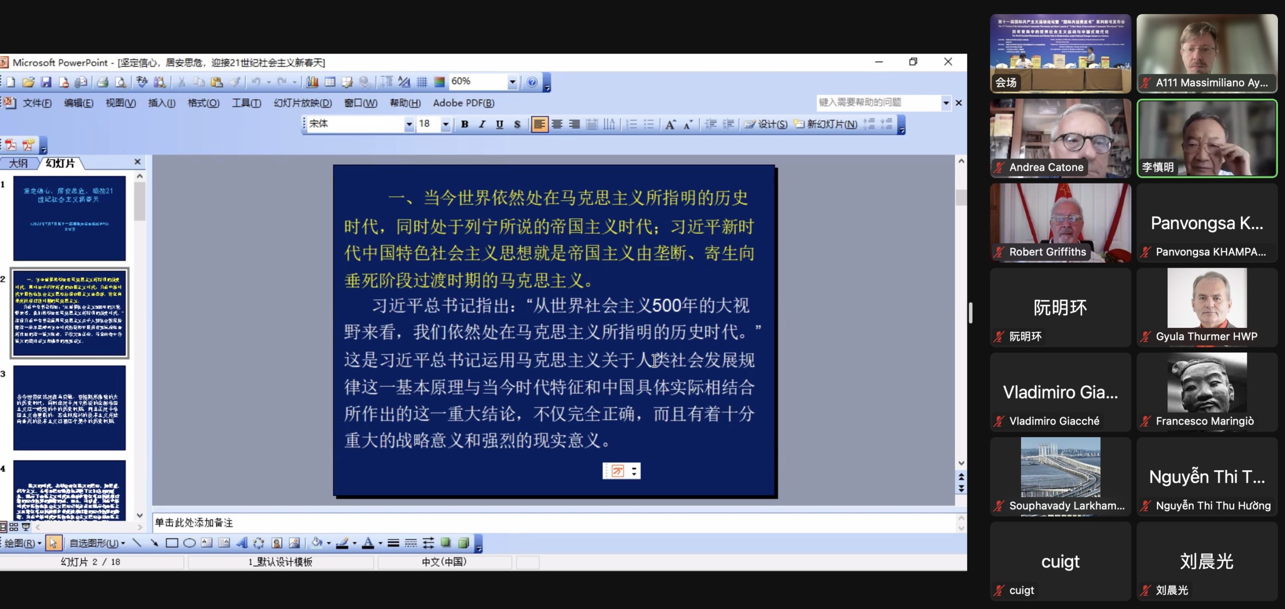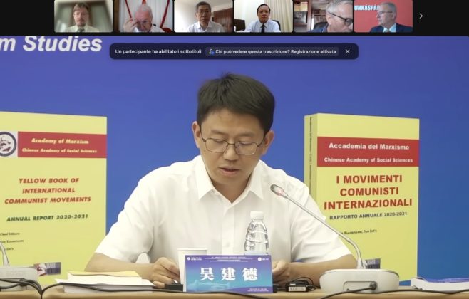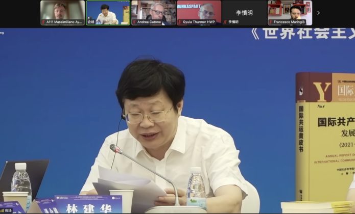 Si è svolto sabato mattina a Kunming l’11° Forum Internazionale sui Movimenti Comunisti ospitato dall’Università dello Yunnan e promosso dall’Istituto di Marxismo dell’Accademia Cinese delle Scienze Sociali (CASS) alla presenza di numerosi accademici cinesi ma anche dei due paesi socialisti confinanti: Vietnam e Laos. Per l’occasione sono stati invitati – collegati in videoconferenza – anche alcuni esponenti marxisti europei fra cui il segretario politico del nostro Partito, il compagno Massimiliano Ay che era per l’occasione assistito dal compagno Sébastien Travaglini.