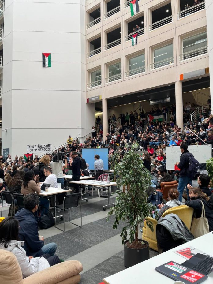 Infine, ci rammarichiamo nel constatare che il rettorato, con il suo ultimatum dato domenica sera (12.05) affinché l’occupazione cessi immediatamente, voglia rompere il dialogo e non entrare nel merito delle rivendicazioni degli studenti, come la richiesta doverosa di rompere ogni collaborazione accademica con le gli atenei israeliani che sono complici del genocidio in corso е molto spesso hanno legami con le stesse forze armate sioniste!