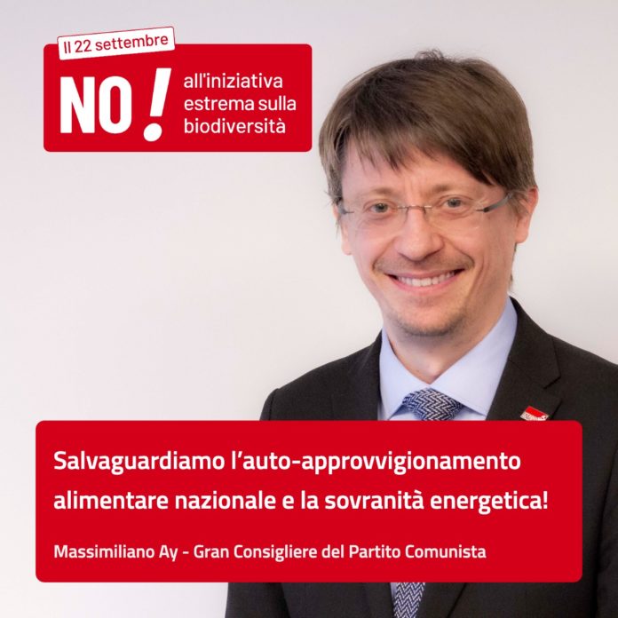 Per tutti questi motivi, coerenti con le nostre precedenti prese di posizioni che ci attestano quale unica forza politica della sinistra svizzera schierata decisamente con i contadini e gli allevatori, che col loro lavoro garantiscono la nostra sovranità alimentare, il Partito Comunista vota NO all’ingannevole “Iniziativa Biodiversità”.