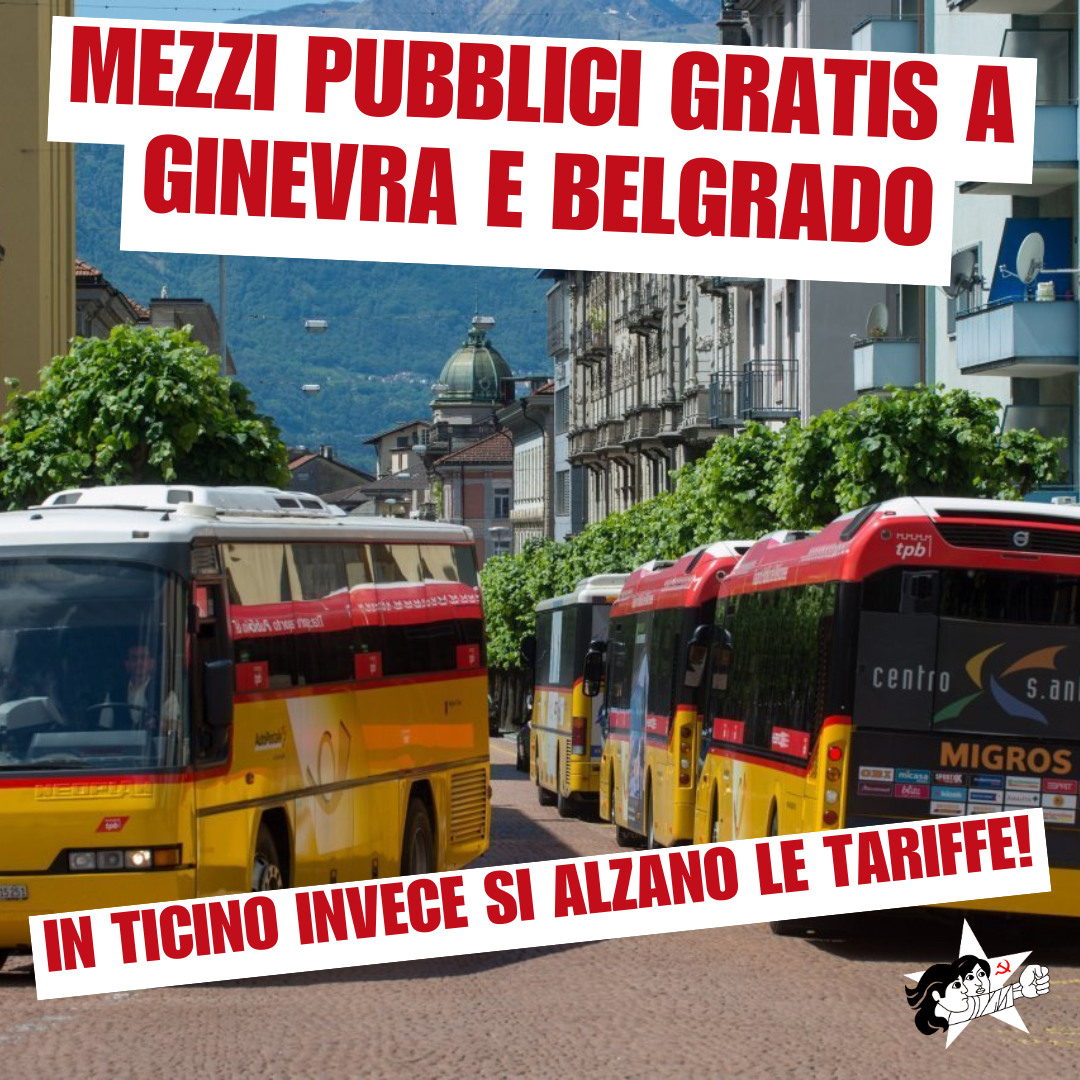 La Gioventù Comunista (GC) prende atto, senza alcun stupore, dell’incredibile successo che stanno avendo a Ginevra i mezzi di trasporto pubblici gratuiti per gli under 25. In pochi giorni sono stati rilasciati più di 3’300 appositi abbonamenti, i quali sono entrati in vigore il 1° di gennaio. A partire dallo stesso giorno, a Belgrado i mezzi pubblici sono diventati gratuiti per l’intera popolazione, senza distinzioni di età, unendosi così già a diverse altre città europee e al Lussemburgo. Quella di rendere i mezzi pubblici gratuiti è dunque una tendenza in tutto il nostro continente: in Ticino però cosa si fa? Purtroppo, esattamente l’opposto. Le tariffe degli abbonamenti Arcobaleno validi per tutto il Ticino sono state infatti ulteriormente alzate, arrivando così a un aumento in pochi anni del 20%, una crescita vertiginosa dei prezzi valida sia per gli adulti che per i giovani.