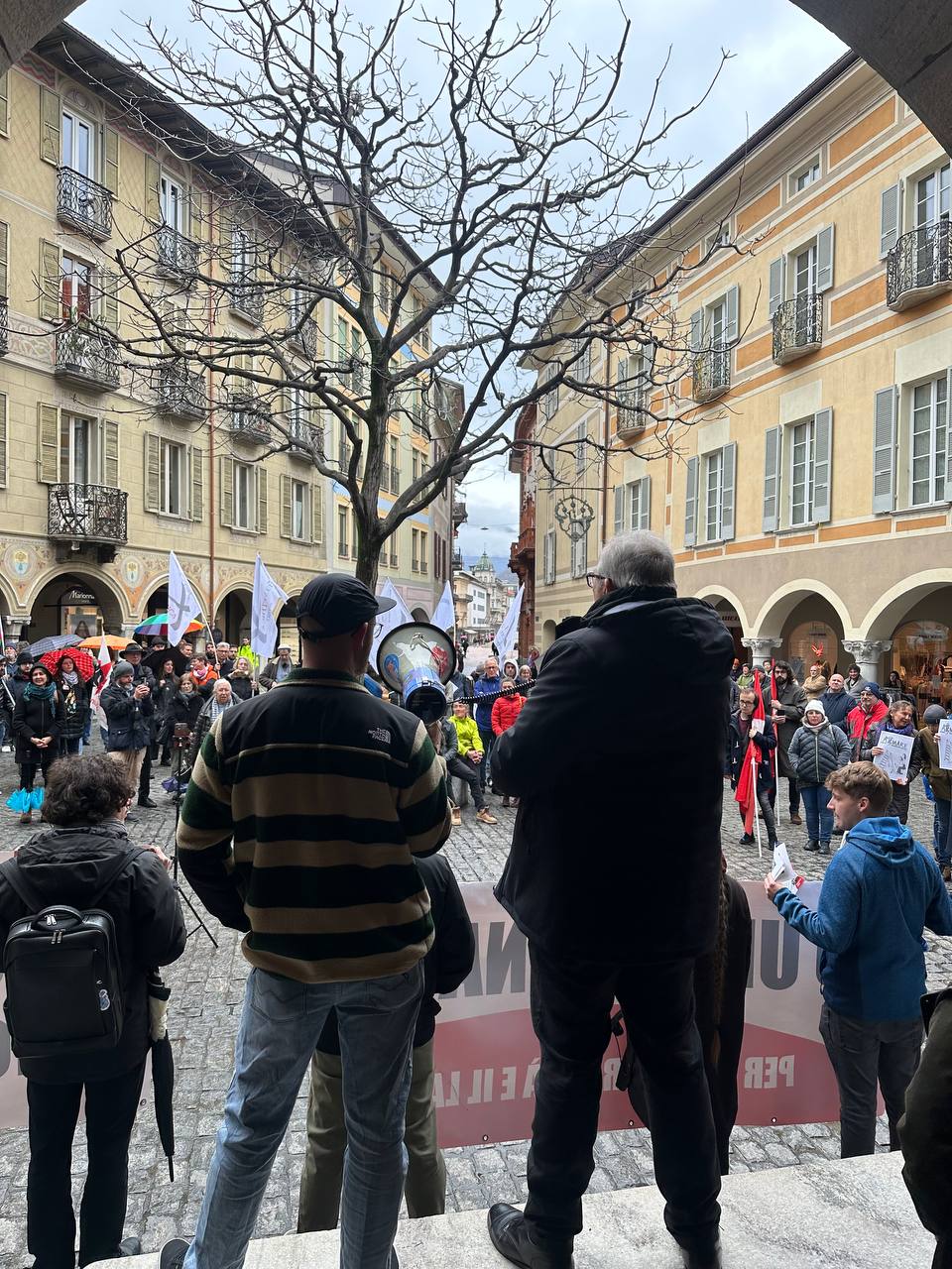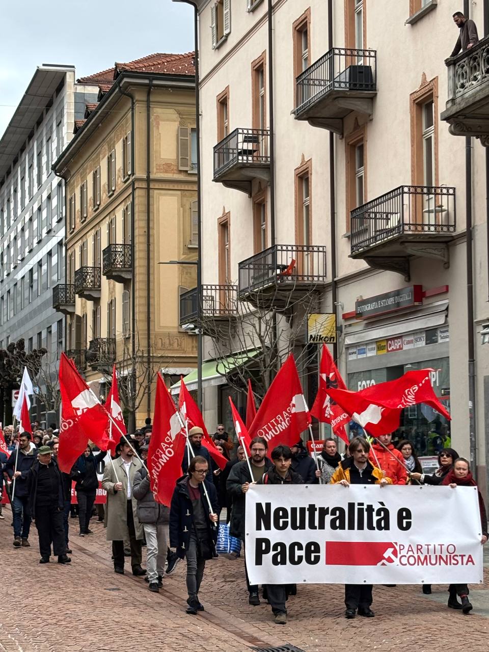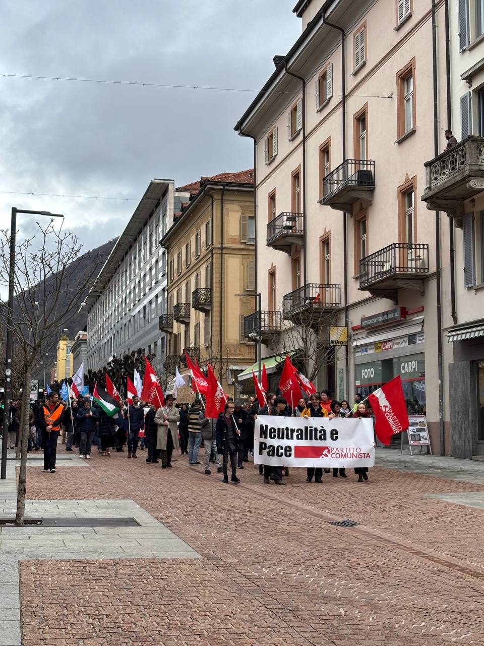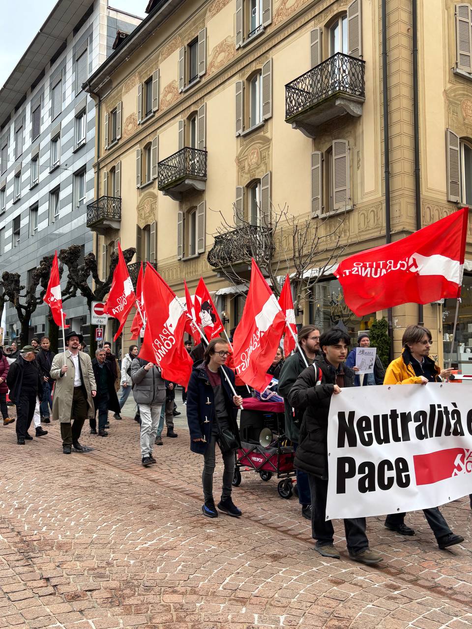Il Partito Comunista è orgoglioso di aver promosso questa prima manifestazione di piazza a favore della Neutralità e della Pace, che ha avuto un’eco nazionale: a Bellinzona sono arrivate infatti delegazioni anche da altri cantoni come quella del Partito del Lavoro di Basilea (PdA Basel) e del Movimento Svizzero per la Pace (MSP/SFB) da Zurigo e Ginevra. Dall’Italia era presente in piazza anche l’analisita geopolitico Stefano Orsi.