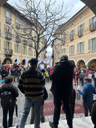 La piazza ha rifiutato in particolare la proposta dello Stato Maggiore Generale del nostro Esercito di inviare soldati svizzeri in Ucraina a farsi ammazzare in una guerra che non ci riguarda. Al contrario è stata ribadita la necessità di mantenere la Svizzera un paese strettamente neutrale, rifiutando di prendere parte a missioni militari all’estero sotto controllo NATO.