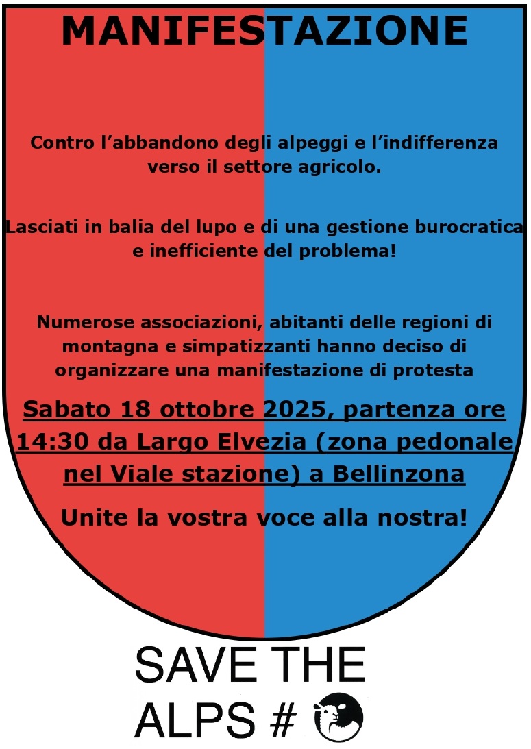 Il Partito Comunista esprime la propria solidarietà ai promotori della manifestazione “Contro l’abbandono degli alpeggi e l’indifferenza verso il settore agricolo”, che si terrà sabato 18 ottobre alle ore 14:30 presso Largo Elvezia a Bellinzona, e invita la popolazione a parteciparvi. Si tratta di una mobilitazione utile per difendere il mondo rurale ticinese, oggi sempre più colpito dall’abbandono delle attività di montagna, dalla mancanza di sostegno politico ed economico e dall’indifferenza istituzionale nei confronti di chi garantisce la cura del territorio e la produzione alimentare locale.