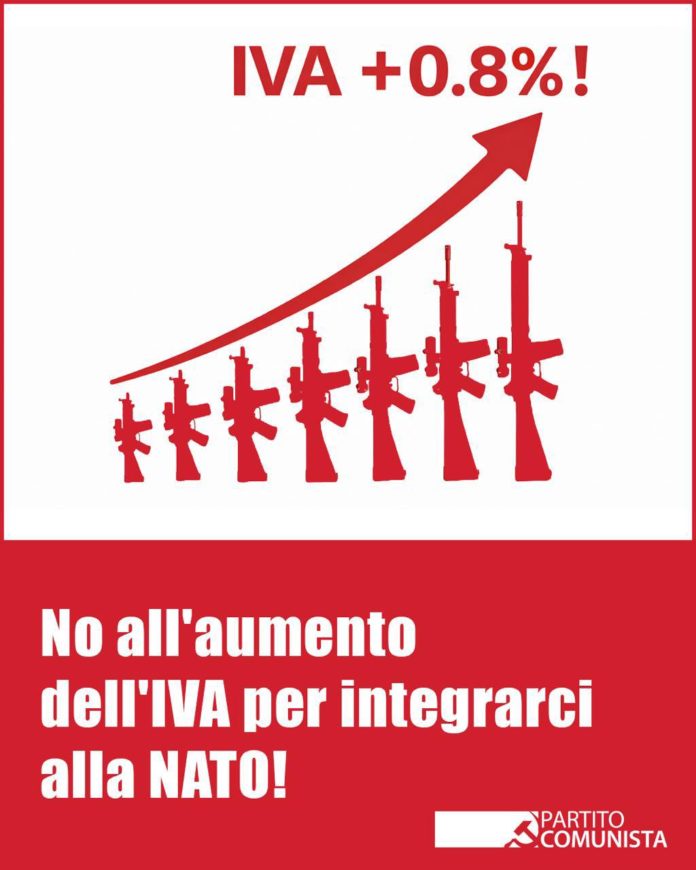Il Partito Comunista si oppone fermamente alla decisione di aumentare a 31 miliardi di franchi il budget della sicurezza e dell’esercito tramite un innalzamento di 0,8 punti percentuali sull’imposta sul valore aggiunto (IVA). L’IVA è infatti una tassa iniqua e antisociale, che tutti – dall’operaio al miliardario – pagano in ugual misura e che andrebbe semplicemente abolita: aumentarla per finanziare la corsa al riarmo – proprio come ci ordinano la NATO e l’UE – è semplicemente inaccettabile!