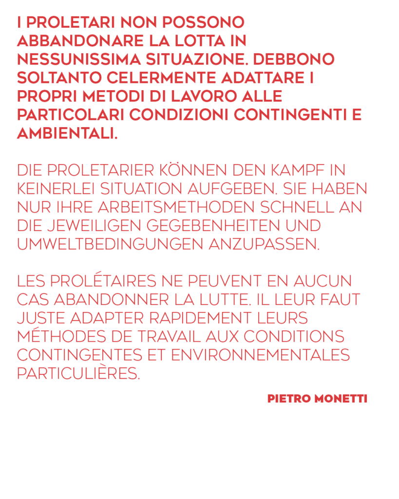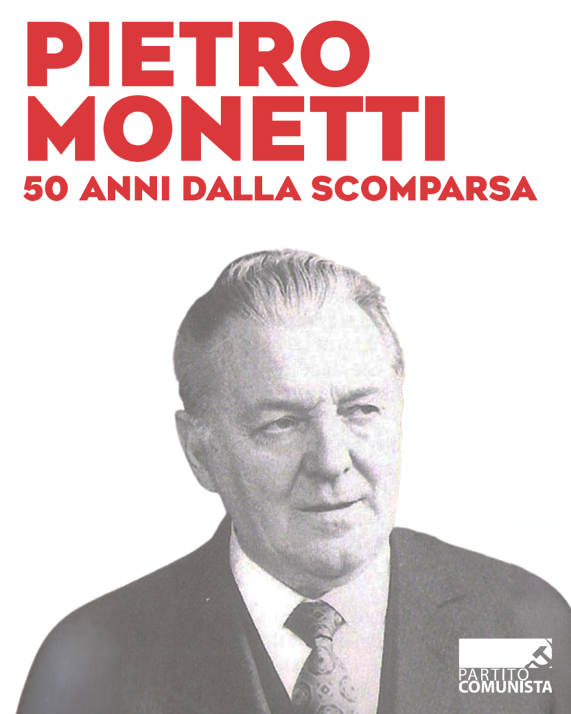 Nel 50° anniversario della sua scomparsa, avvenuta il 28 giugno 1975, il Partito Comunista ricorda il proprio fondatore Pietro Monetti, per lunghi anni unica voce comunista nel Gran Consiglio ticinese, in cui sedette per cinque legislature. Per oltre un trentennio instancabilmente al servizio dei lavoratori e del Paese, Monetti fu anche municipale di Mendrisio e poi consigliere comunale, oltre che uno dei principali esponenti del movimento operaio svizzero.